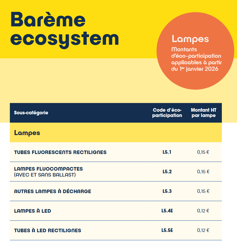 Changement de l’éco-contribution pour les ampoules en France à partir du 1er janvier 2026